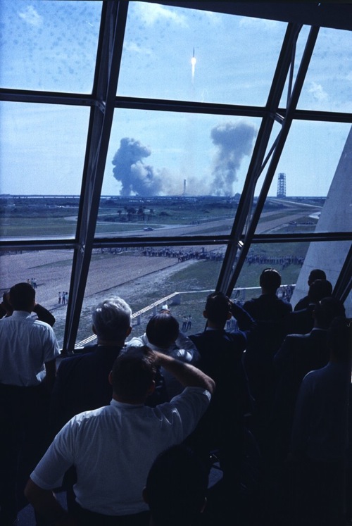 In the launch center, a hundred men (yeah, it was men back then, and yeah, I bet they’re all lilly white) watch a decade of work lift off…