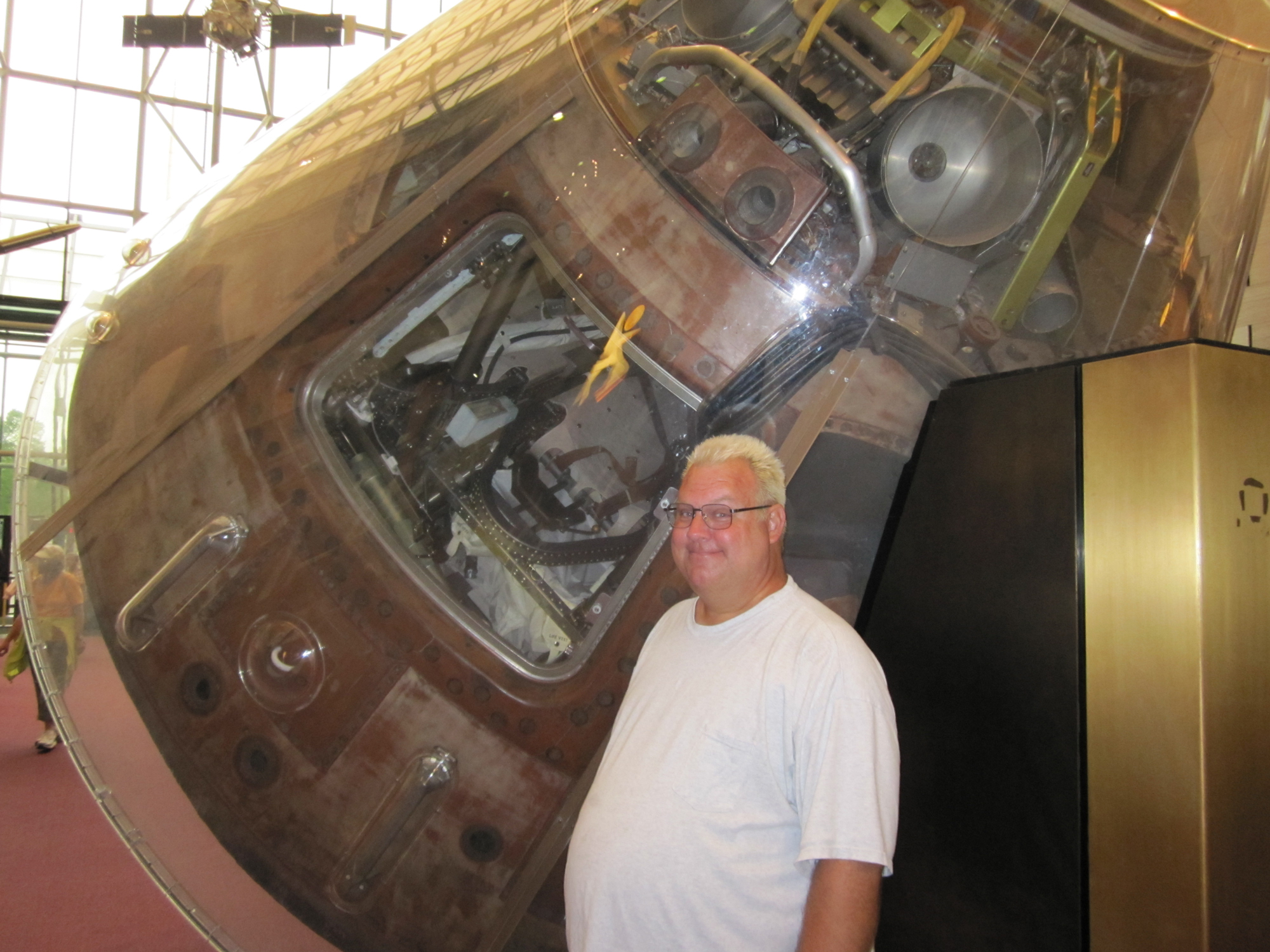 Now, the capsule hits the atmosphere. The astronauts are slammed into their seats by 6.5 G’s (that means they feel like they weigh 6.5 times what they normally do.) Their average weight was 162 lbs. (they’d lost 7 pounds during the 8 day trip,) so they each felt like they weighed around 1,050 lbs… and not for just a second or two, for four minutes! This coming right after 8 days of feeling no weight at all! There’s a reason why almost all the men who went to the Moon on Apollo were hot-shot fighter pilots.