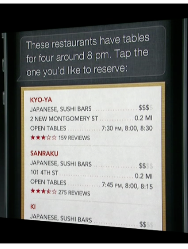 Oh, yeah. That’s right: If you have an iPad 3, you’ll now have Siri. She’s learned a few new tricks. She can open apps, she knows all about sports, she knows which movies are playing locally, and you can now tell her, “Find me a sushi place with a table for four at eight.” And using the Open Table app, you can make an actual reservation.