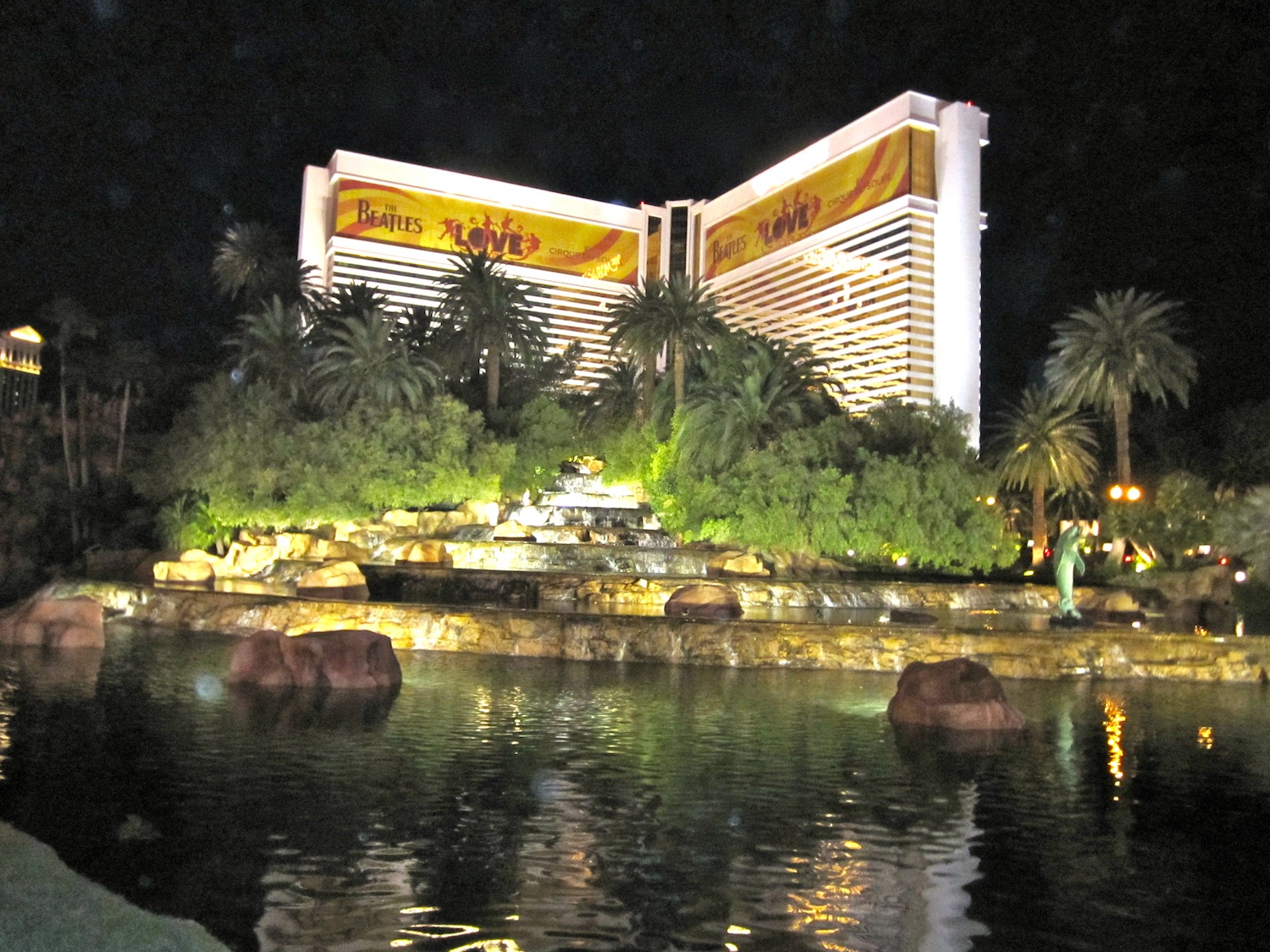 This is what used to pass for “serious bling” in Vegas. There’s a “volcano” at the top of that island that spews red water and makes noise every hour or so. When the Mirage was built, it was the most expensive hotel ever made, and was considered a huge gamble. Its success led to the massive, spare-no-expense projects up and down the strip.